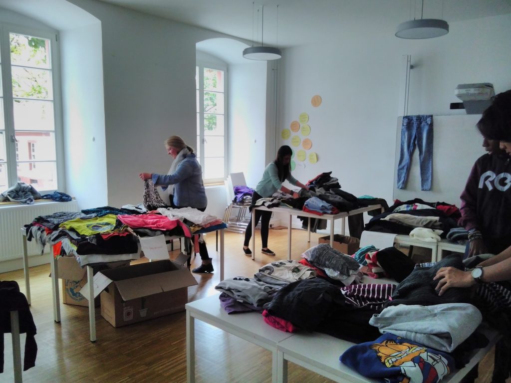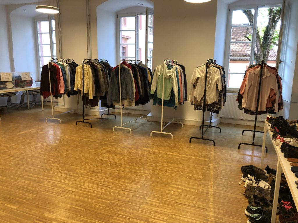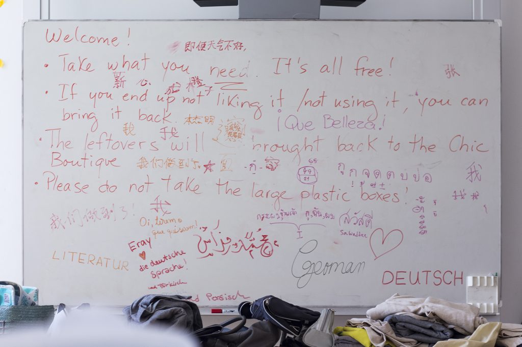 The ‘Chic Boutique’ is our school’s second-hand store, located in an unused room on the top floor of the Kartaus, our school building. Twice a week on evenings, it invites members of our community to acquire free clothing items, accessories, stationery, and toiletries. All of these items are collected from staff members and students – donated mostly as they prepare to leave campus after two years.