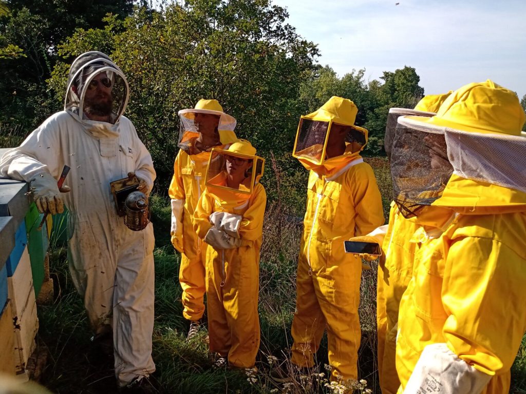 We do this by sharing our newly acquired knowledge with local primary school children aged 8-10, who visit us in our ESS labs once a week during term time. We also visit a local beekeeper and his hives twice a year: in late summer, for a last glimpse of honey and a honey tasting; and in spring, when their busy life resumes after the winter break.