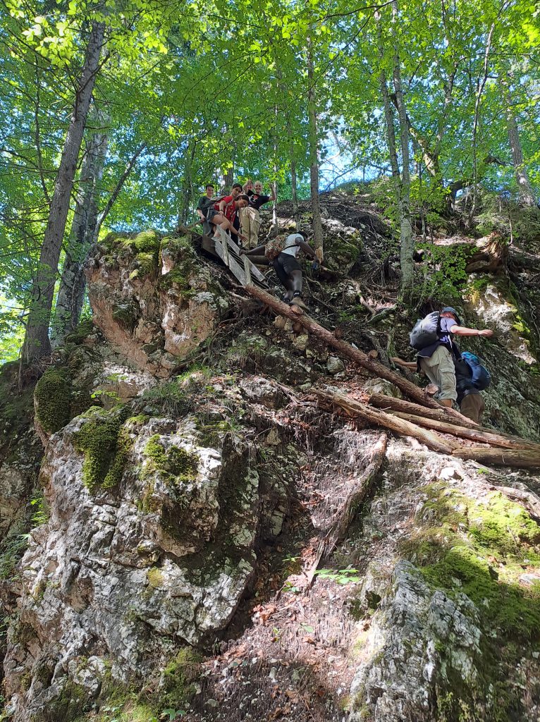 Inside a millenary pine, spruce and deciduous tree forest, students also visited the “Parco Tematico della Grande Guerra/ Abschnitt Saisera”, where they were able to see with their own eyes the defensive lines that troops built in the forest to survive during World War I. They walked in the tunnels, entered the wooden shelters, and walked steep paths on top of giant boulders!