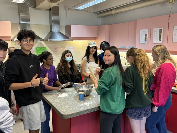 As a final activity, the participants prepared cookie dough together. They mixed the ingredients and shaped the dough into small cookies. The aroma of the freshly baked cookies filled the room, appealing to the senses once again. The students had the opportunity to taste and enjoy the freshly baked cookies.
