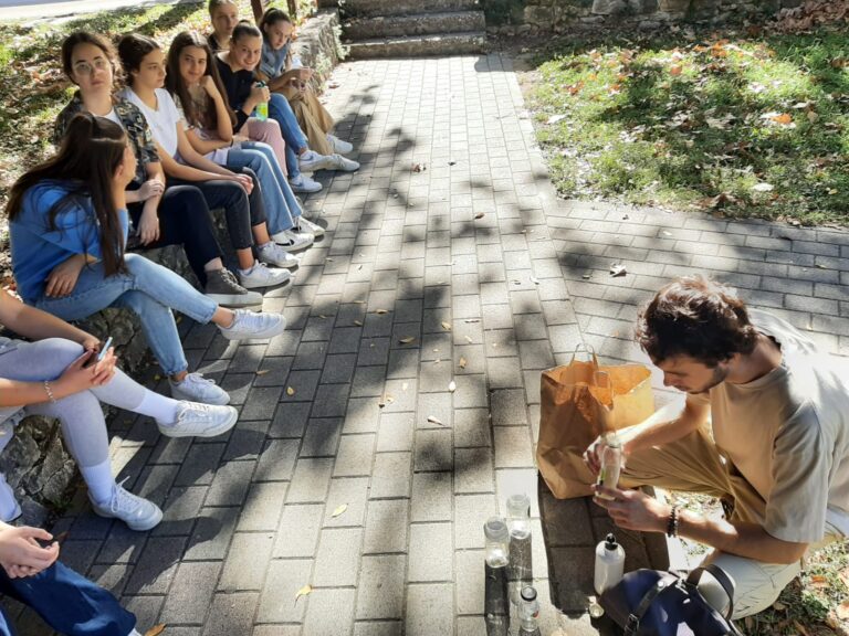Students made a presentation about the harm of palm oil production, and a workshop on the topic of a factory impacting the river in a city and what three groups of stakeholders (farmers, scientists, and politicians) would do in such situations. The participants visited Mak’s house, a museum in honour of Mak Dizdar, a famous Bosnian and Herzegovinian poet. The awards were given to the best participants, healthy palm oil free snacks. In addition, they made an insect hotel with the local students.