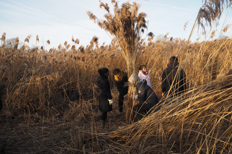 The first task was to cut the reeds (out in a wetland near Freiburg, at a time of the year when the ground is frozen) and the bamboo (at the university botanical garden). Then, after the material was cut to the required length with a table saw (by a member of staff), students packed the reed and bamboo material into the plastic tubes. This happened in autumn and winter.