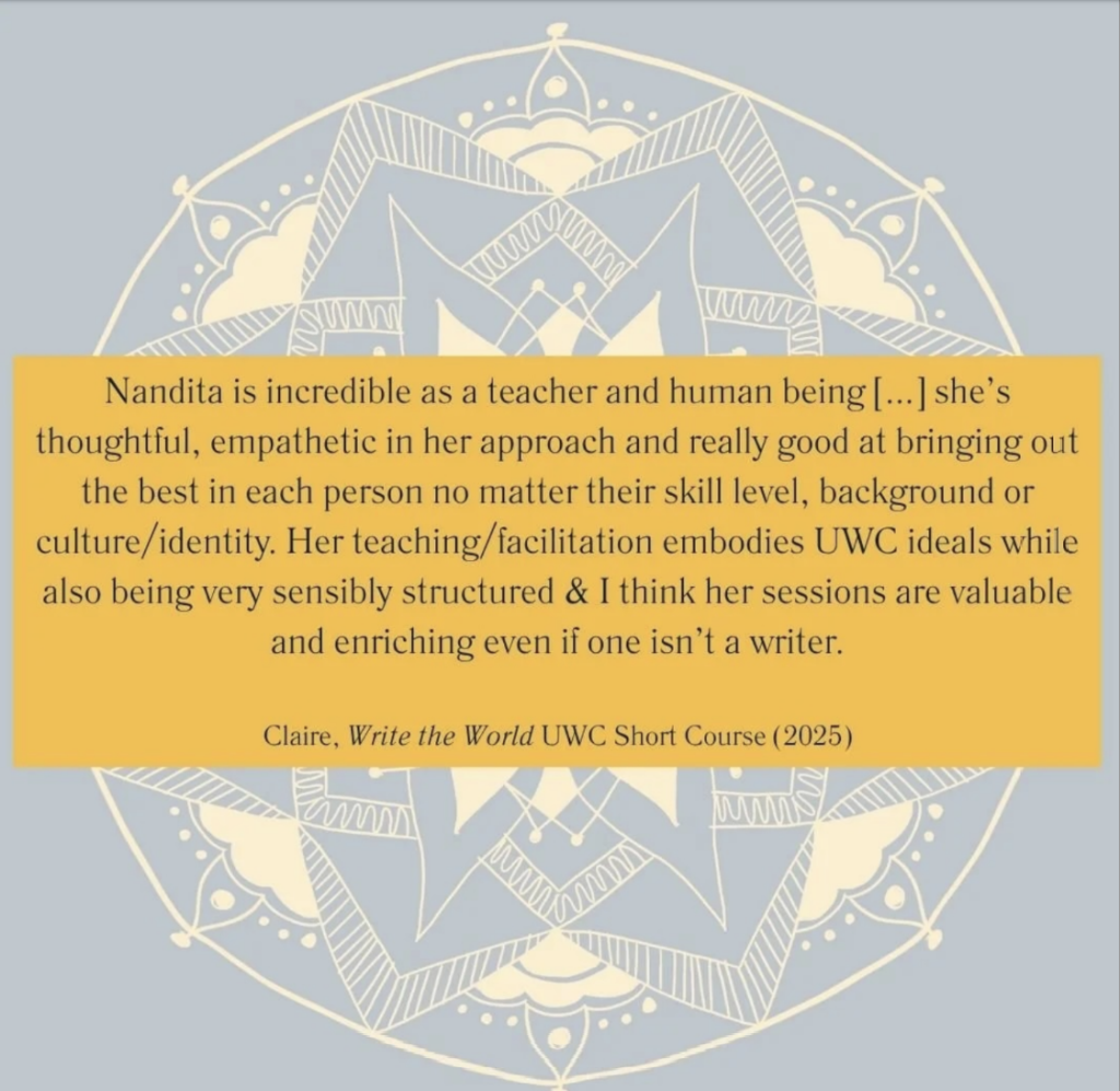 This UWC short course series emerges from Dr. Nandita Dinesh’s book Creative Writing and the Experiences of Others. Nandita is an alumna of UWC Mahindra College and has taught at the United World Colleges in India, Armenia, and USA.